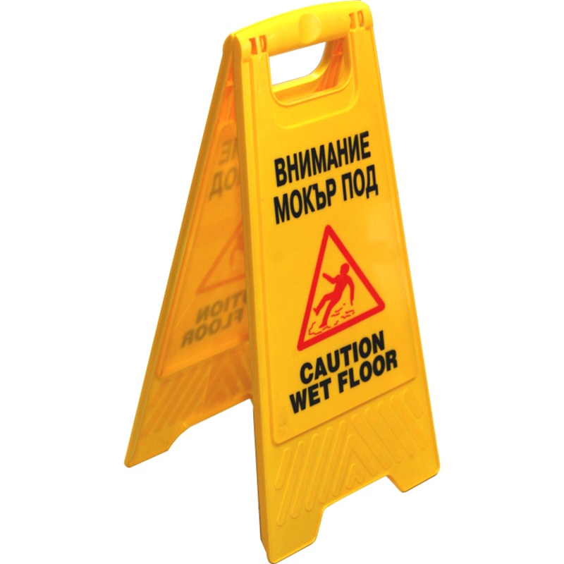Free standing plastic sign “Caution Wet Floor” English and Bulgarian