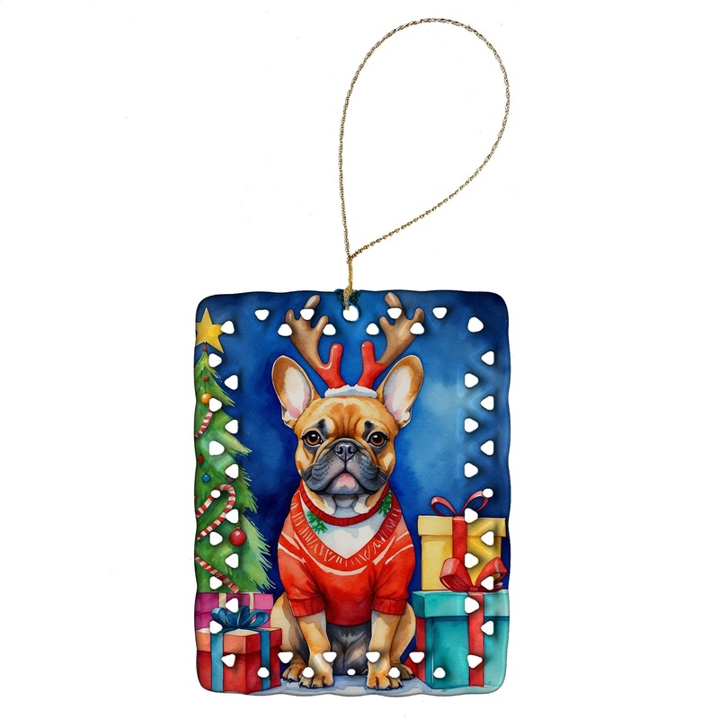 Porcelain Ornament featuring breed specific French Bulldog artwork. Celebrate Christmas with this Christmas Ornament. Add a unique, personal touch to your holiday decor with our Rectangular Lattice Porcelain Ornament. Perfect for creating cherished memorie