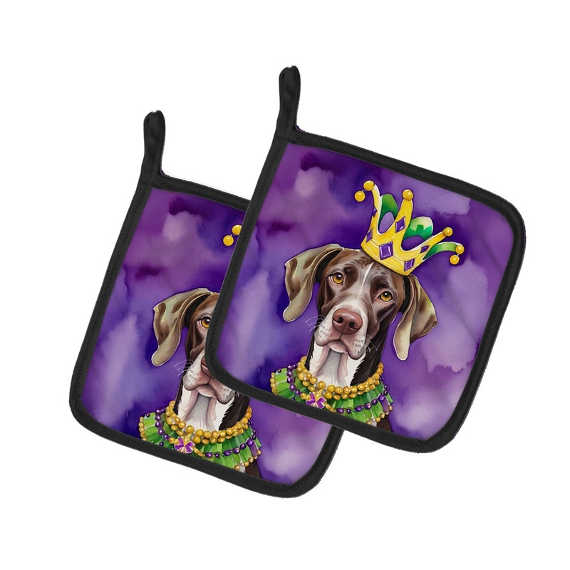 Pair of Pot Holders featuring breed specific German Shorthaired Pointer artwork. Celebrate Mardi Gras with this Mardi Gras Pair of Pot Holders. A Pair of Pot Holders to match your kitchen decor. Made in the USA these are thick and functional. Full color ar