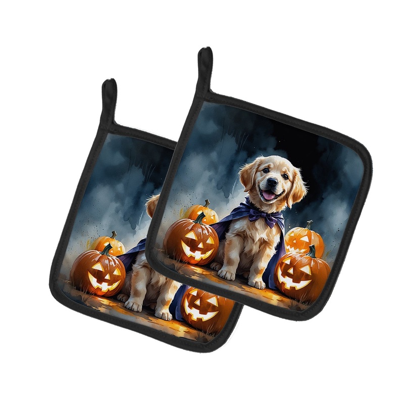 Golden Retriever Puppy Halloween Pair of Pot Holders
