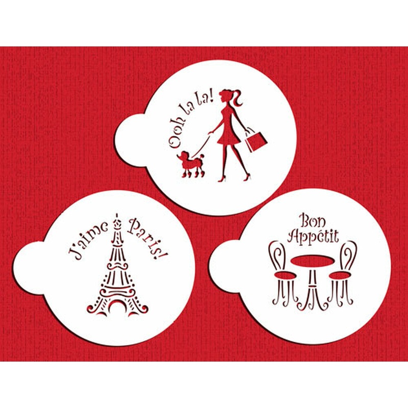 Whether it is shopping, climbing the Eiffel Tower or enjoying an outdoor cafe, everyone can find a reason to LOVE PARIS. Each cookie stencil design fits within 2.75" circle. Stencils are made of durable 10 mil food grade plastic for high-quality, professio
