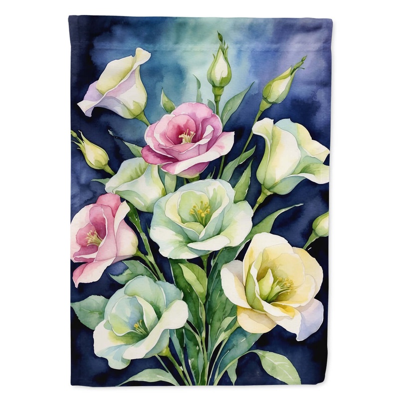 Garden Flag featuring breed specific Lisianthus Flowers artwork. Enhance the beauty of your garden, patio, or yard with Caroline's Treasures Decorative Garden Flag, proudly made in the USA. Crafted from two pieces of thick, double-sided polyester fabric, t