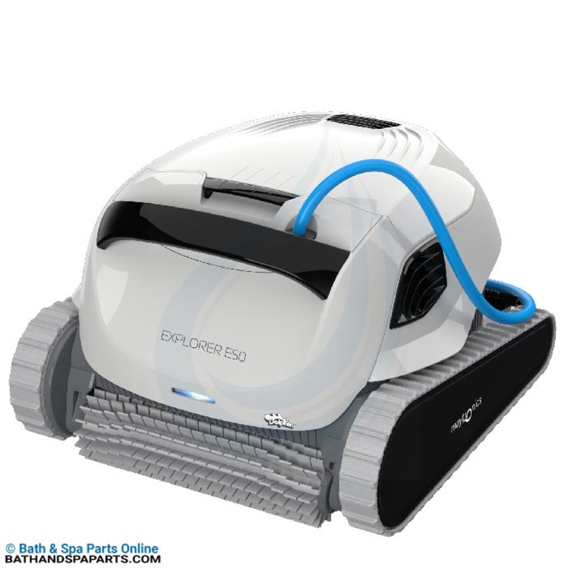 | Hand-off your pool cleaning duties for good with the Dolphin Explorer E50. This nimble robot delivers an uncompromised clean with intense scrubbing and powerful filtering capabilities. Schedule cleanings, cycle options, and spot clean using the new MyDolphin Plus app. |