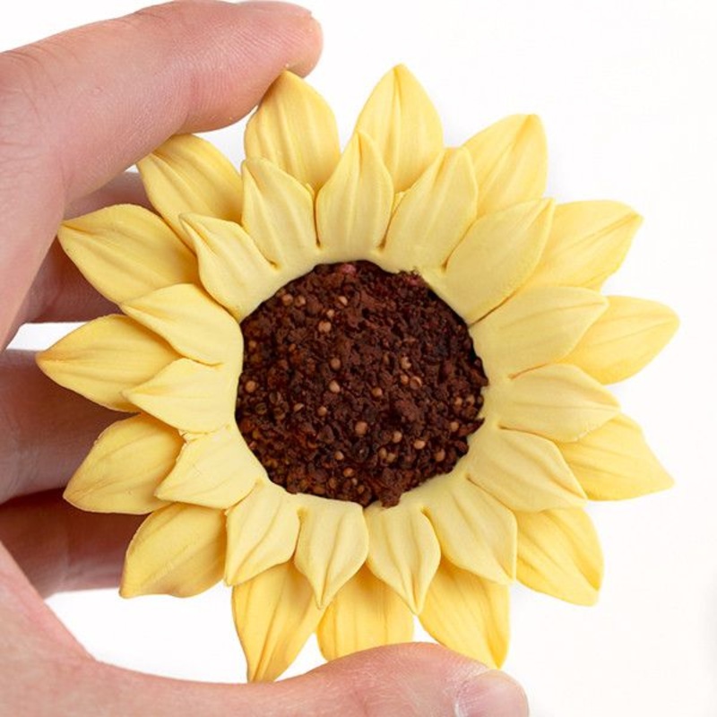 This gorgeous Sunflower is readymade by hand from gumpaste. Gumpaste flowers offer a way of decorating cakes hassle free for both professional and amateur decorators. Each flower is bound by bendable wires that make for easy positioning and application on cakes. Achieve a realistic appearance and make your cakes blossom into beautiful creations by using Gumpaste Flowers.