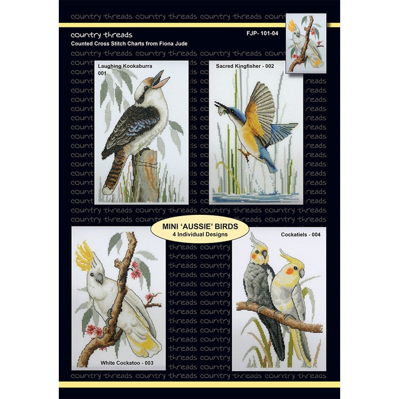 4 designs by Fiona Jude - Laughing Kookaburra; Sacred Kingfisher; White Cockatoo; CockatielsDesign Size: 16 x 24cm (on 14 count aida)If you'd like me to kit this up for you with fabric, chart and DMC threads please email me at the shop [email protected]