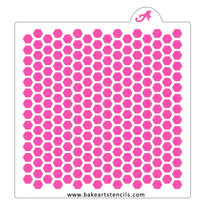 BakeArt Stencils' Mini Honeycomb Pattern Cookie Stencil is made on a 5.5" x 5.5" template.Bake up bee-utiful cookies with this design! This cookie stencil is perfect for decorating Valentines' Bee Mine Cookies to 'What will it Bee?' Baby Gender Reveal swee