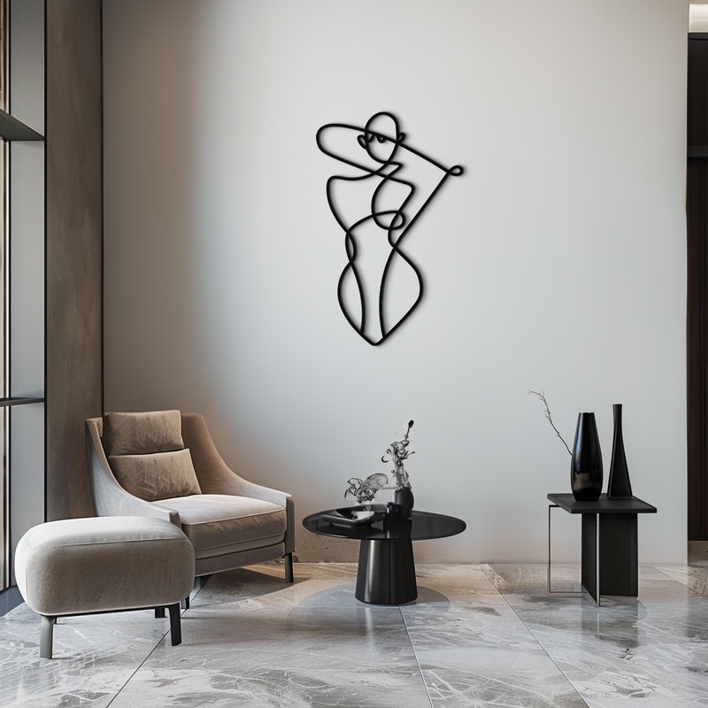 Elevate your space with this Minimalist Abstract Female Form Metal Wall Art, a stunning representation of modern elegance. Crafted from 1.5mm premium steel, this unique line art sculpture captures the beauty of the human form with a sleek and fluid design.