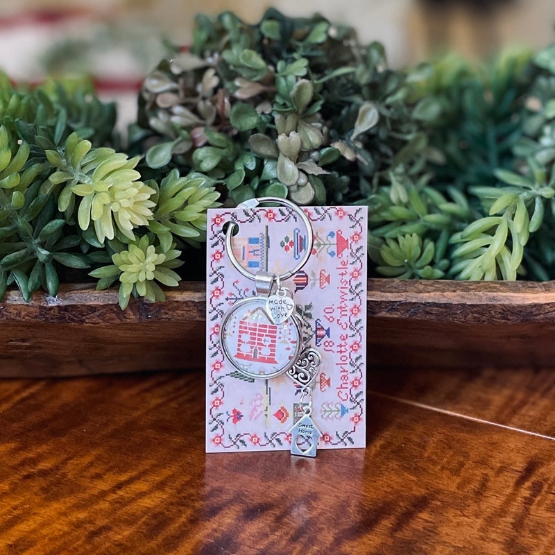 This gorgeous scissor fob come with a central medallion featuring a motif from an antique sampler and a variety of silver-toned charms. The fob comes beautifully displayed on printed card stock and would make a lovely gift for yourself or a stitching frien