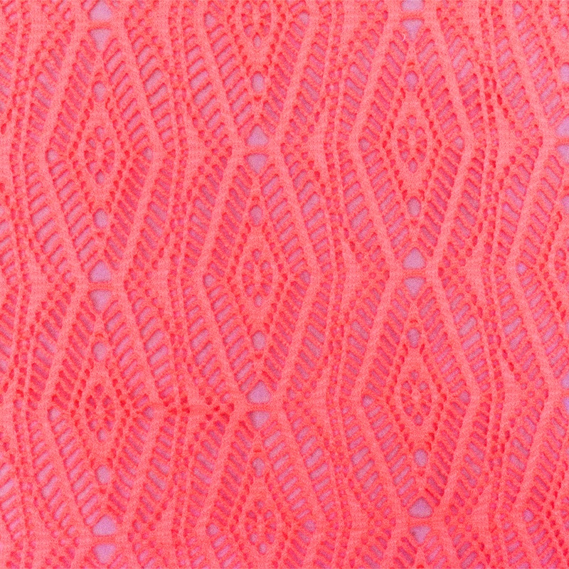 -Patterned diamond stretch polyester crochet knit fabric-Polyester-Spandex-Width: 60"-Weight: Light-Transparency: Semi-Sheer-Hand: Textured,Soft-Stretch: Slight Horizontal Stretch-Drape: Very Good Drape-Luster: Matte-End Uses: Apparel,Dresses,Overlays,Blou
