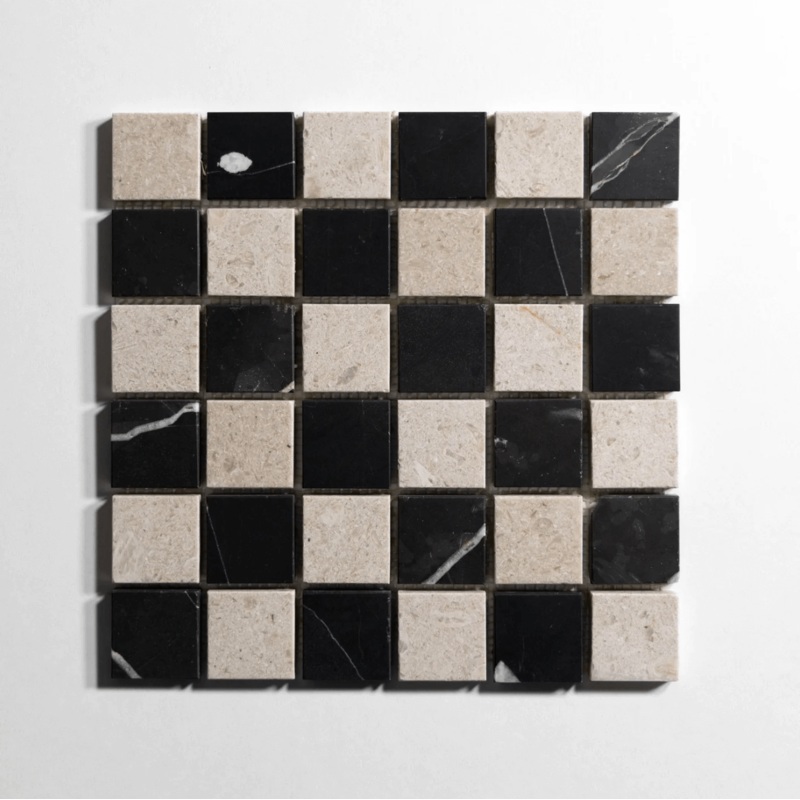 Sierra Limestone & Nero 2″x2″ Mosaic