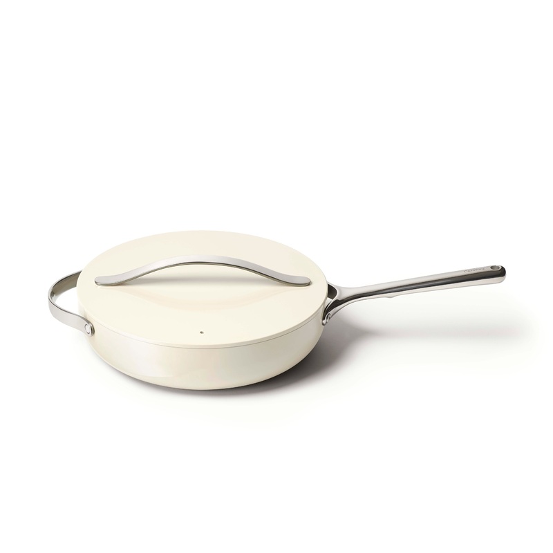 Caraway's non-toxic Saut Pan (lid included) allows for healthy cooking in the kitchen without harmful chemicals: use for risottos, soups, and more. Featuring a ceramic-coated interior, this durable non-stick pan makes cooking easier than ever, cleaning (da