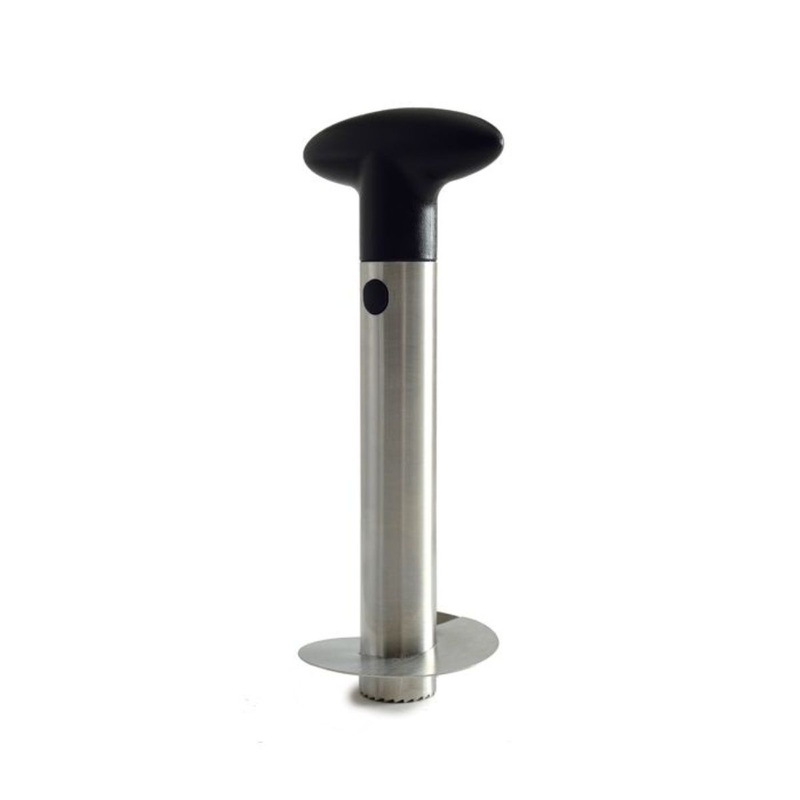 Measures: 3.5" x 9.25" x 3.25" / 9cm x 23.5cm x 8cmEffortlessly core and slice a whole pineapple.Uniform slices and juices are retained with minimal waste.Comfortable nylon handle with stainless steel body and blade.Works best with 3-4lb pineapples.1. Slic