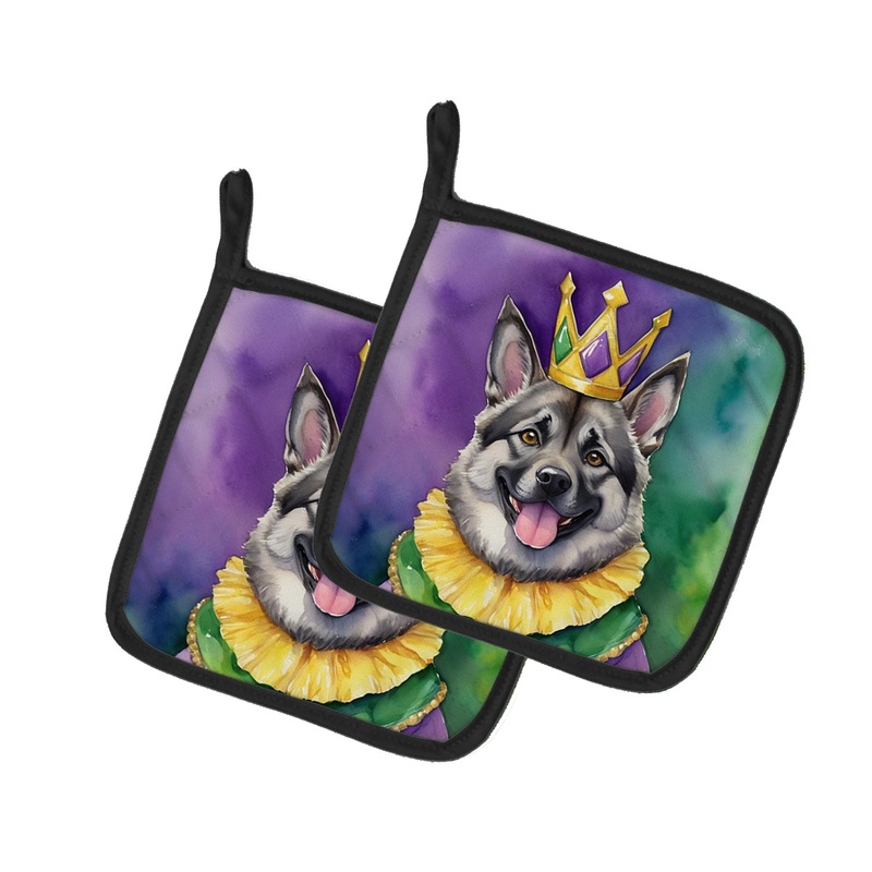 Norwegian Elkhound King of Mardi Gras Pot Holders – Set of 2 Decorative Kitchen Helpers | Made in the USA