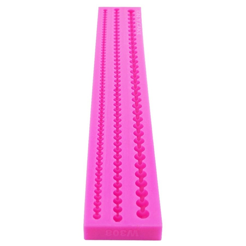 Simply roll a log of fondant, press into the bead mold, and create a strand of pearls in seconds. Attach to your cake with water or icing. To create a sheen, brush our non-toxic disco dusts and luster dusts onto your border.
