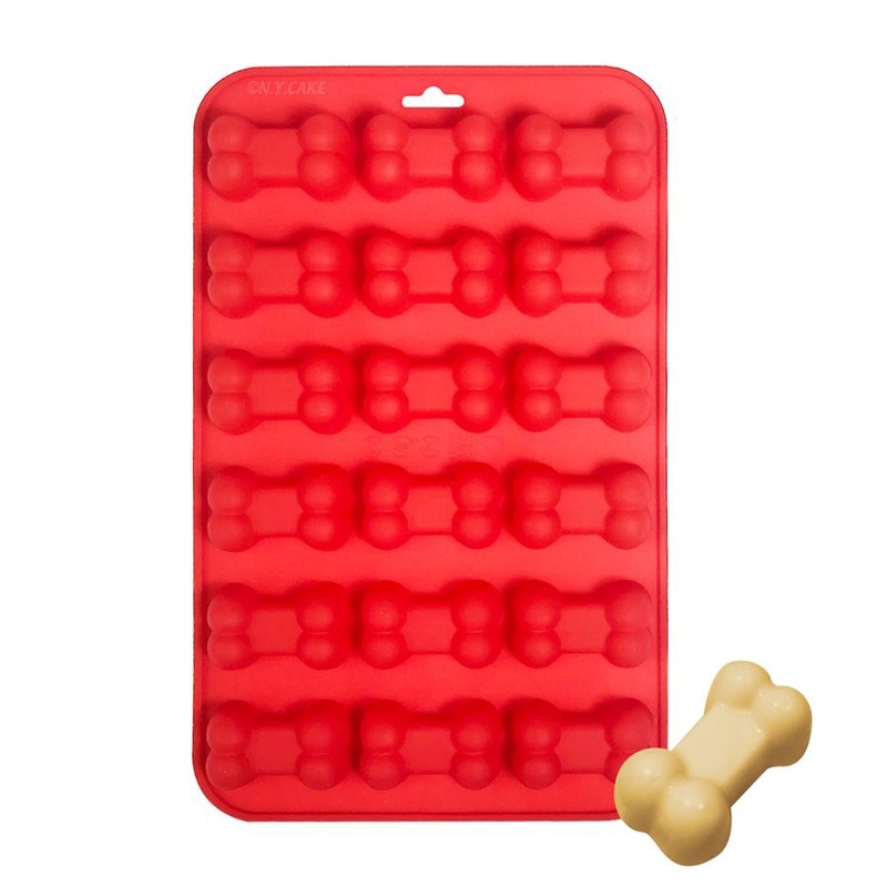 Mini Bone Silicone Mold - 18 CavityNY Cake's line of novelty silicone baking pans is a great alternative to aluminum bake ware.Bakers and cake decorators alike prefer them for their flexibility and virtually non stick fabrication. Use for cakes, gelatin, m