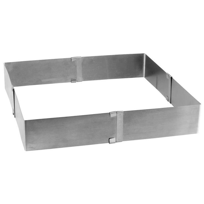 Stainless steel square flex adjustable cake ring and mousse mold. Will not rust. Expandable/Retractable