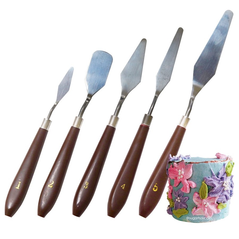 Our set of 5 palette knives/spatulas are made with stainless steel blades and plastic handles for ease of use.Set includes:1. Mini Diamond Shaped Icing Spatula (1.5" Blade)2. Wide Shaped Icing Spatula (2" Blade)3. Diamond Shaped Icing Spatula (2 5/8" Blade