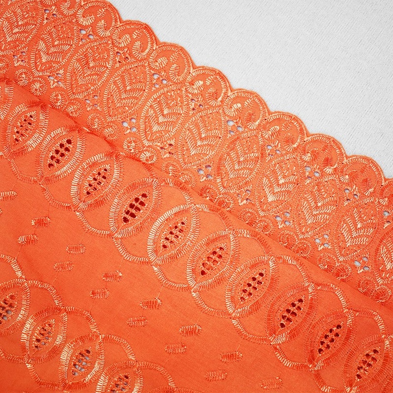 Orange Poly-Cotton Embroidered Abstract Leaves Scallop Woven Fabric