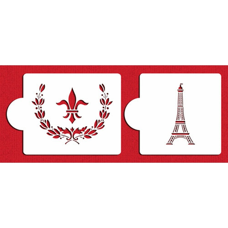 This is a beautiful Parisian theme two stencil set that is perfect as shown or for combining with a monogram. The stencils are cut on durable 10 mil food grade plastic. The Fleur de Lis side measures 3.75"H x 5"W and the Eiffel Tower Side measures 3.75" H