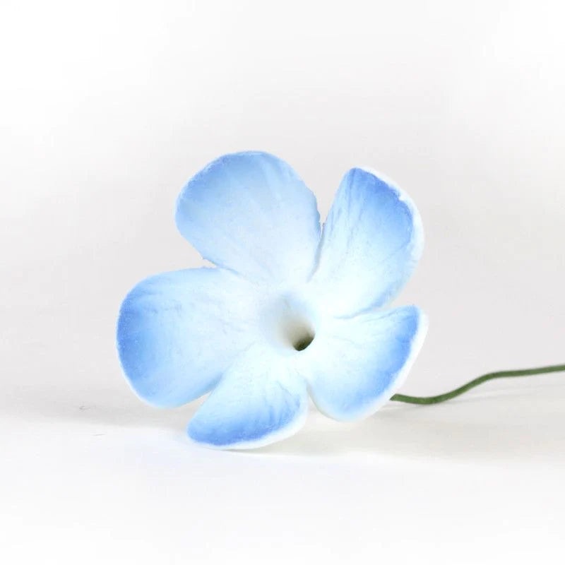 These beautiful blue flowers are great to use as a filler with bigger sprays or by itself on small cakes.Readymade by hand from gumpaste, these gorgeous Morning Glory Flowers offer a way of decorating cakes hassle free for both professional and amateur decorators. Each flower is bound by bendable wires that make for easy positioning and application on cakes. Add a realistic appearance and make your cakes blossom into beautiful creations by using Gumpaste Flowers.
