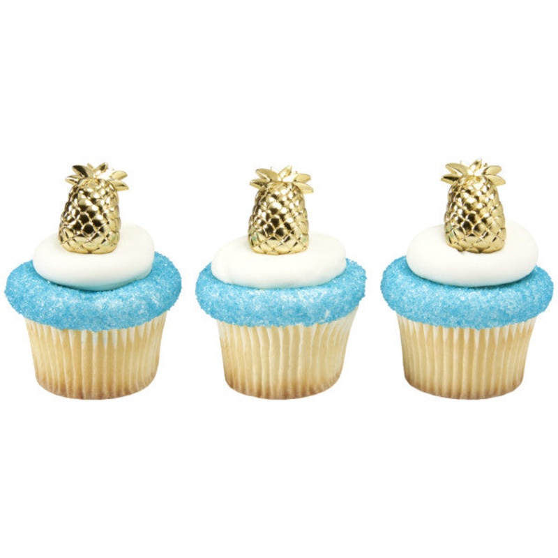 Gold pineapples DecoPics are great for finishing off a luau themed party. Great for cake and cupcakes to add to an overall theme.Dimensions:Pineapples: 1.65 x 0.95 x 0.45 inches