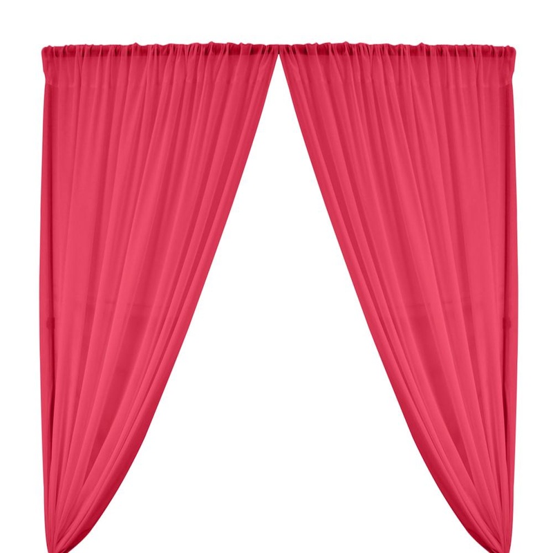 Introducing our very own FWD chiffon rod pocket curtains. Instantly decorate any windows or venues with this simple and stylish curtain panel. These beautiful curtains, made from our polyester chiffon fabric, have 4 rod pockets sewn on both the top and bottom ends and feature natural finished edges.