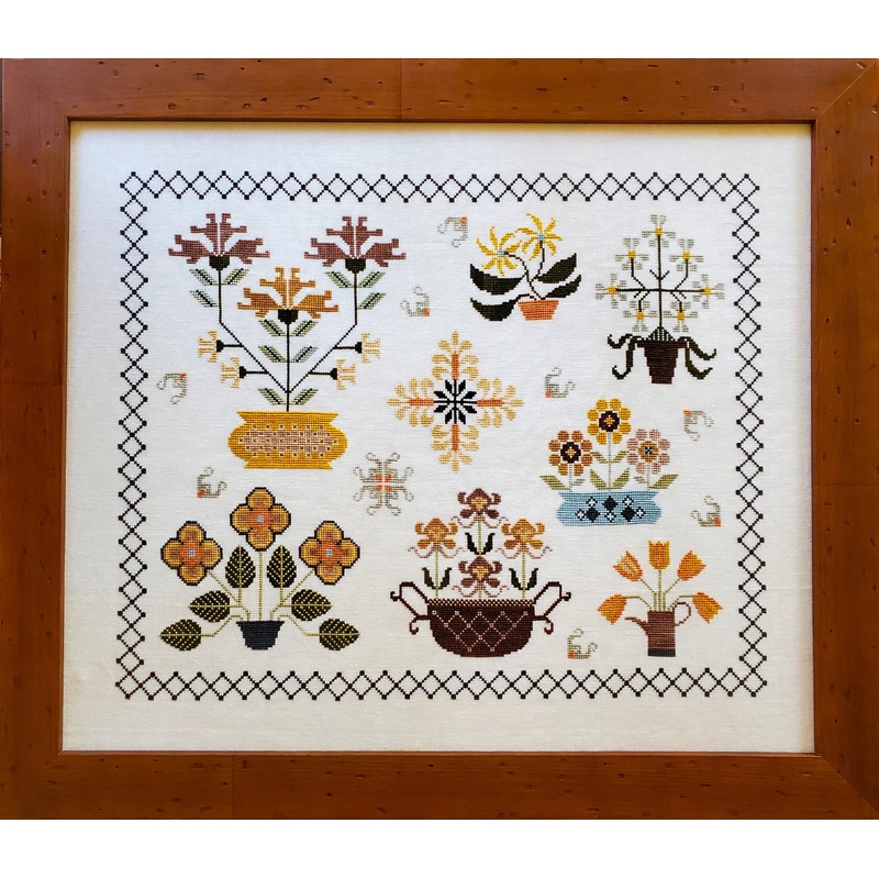 282 x 222 stitchesFabric: 32 count Dirty Porcelain by Roxy Floss Co.You will need one skein each of the following Roxy Floss Co. flosses: Haystack, Colonel Mustard, EVOO, Rhymes with Orange, Chocolate Ganache, Coal, Amaretto, Spinach, Frangelico, Nobel, Pa