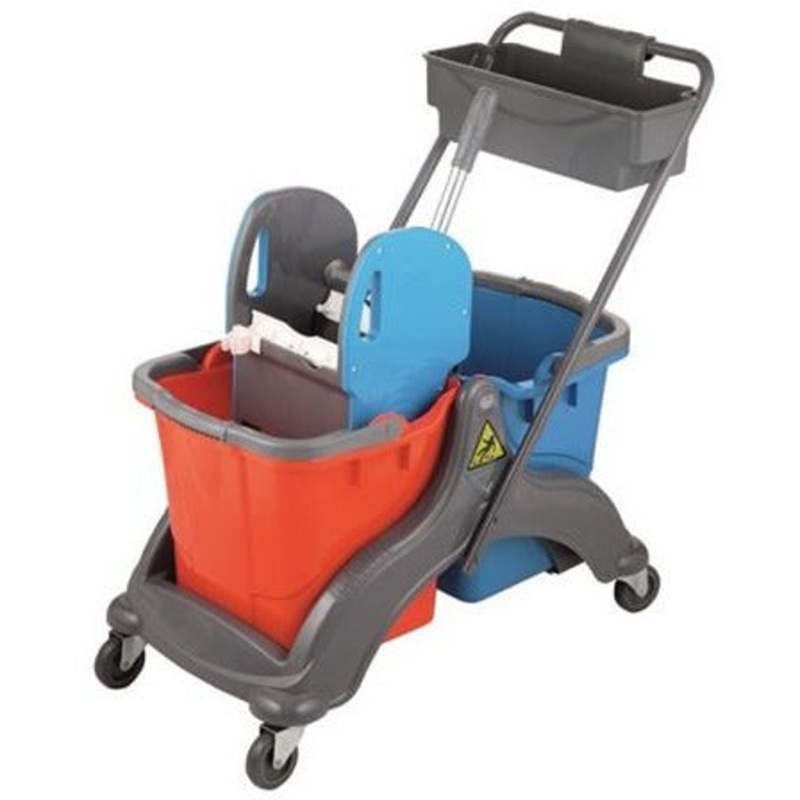 Professional janitor cart with mop wringer and 2×25 litre buckets