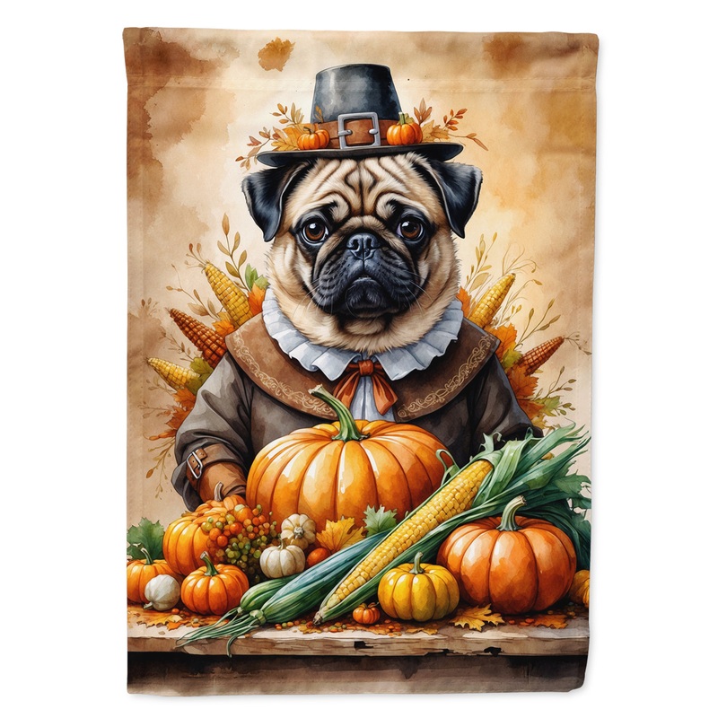 House Flag featuring breed specific Pug artwork. Celebrate Thanksgiving with this Thanksgiving Large Flag. Presenting our Heavy Duty Polyester House Size Decorative Sleeve Pole Flag, a vibrant addition to enhance the aesthetic appeal of your home. This lar