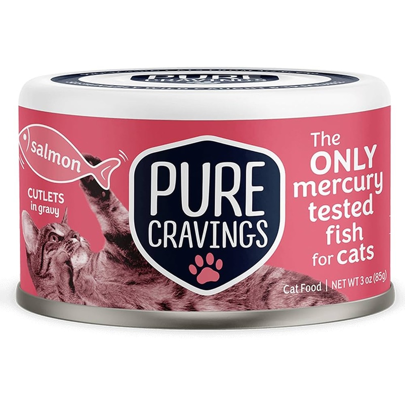 Satisfy Your Cat's Cravings with Delicious Salmon Indulge your feline friend with Pure Cravings Salmon Cutlets in Gravy, a grain-free wet food that will have them purring with delight. This pack of twelve 3 oz servings offers a convenient and delectable wa