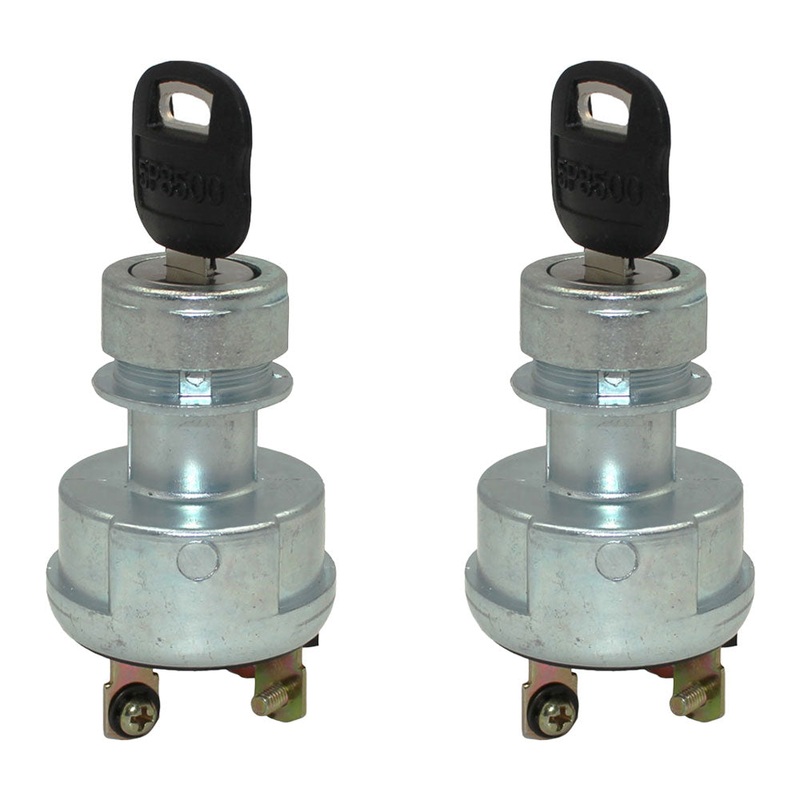 One New Aftermarket Qty 2: Ignition Key Switch w/ 2 KeysTech Info:-Quantity 2-Start, Control, Relay, Bat located on terminal dark blue surface-Spring Return-Activates the starter motor-3 Position, 12/24 Volt-Key removable in "OFF" position only-Starter loc