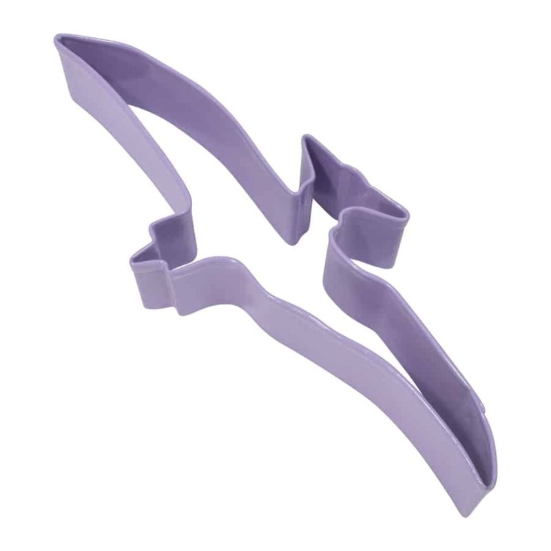Polyresin Coated Steel Lavender Pterodactyl 6 Cookie Cutter. Hand wash and dry thoroughly before storing.