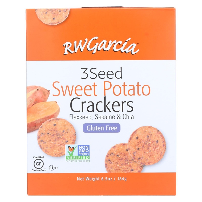 Garcia Sweet Potato Crackers 3 Seed 6.5 Oz. - Pack of SixGarcia 3 Seed Sweet Potato Crackers are deliciously crafted with wholesome non-GMO sweet potatoes, organic chia seeds, sunflower seeds and pumpkin seeds. These crunchy and satisfying crackers are a d