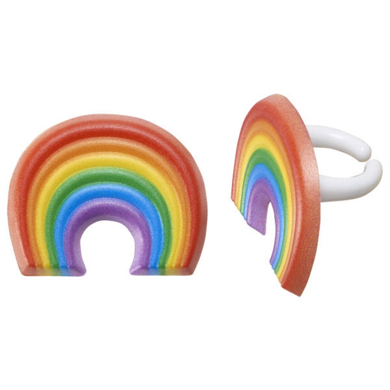 Somewhere over the rainbow is where these rainbow rings will take your display. Great for cupcakes, donuts, or even finish off the look of a cake.Dimensions:RAINBOW RING: 1.5 x 1.25 x 0.8 inches