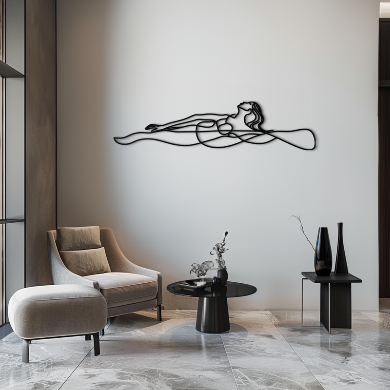 Enhance your space with this elegant Reclining Woman Metal Wall Art, a sophisticated minimalist line art piece that captures the essence of relaxation and femininity. Crafted from 1.5mm premium steel, this modern wall decor is electrostatically coated to e