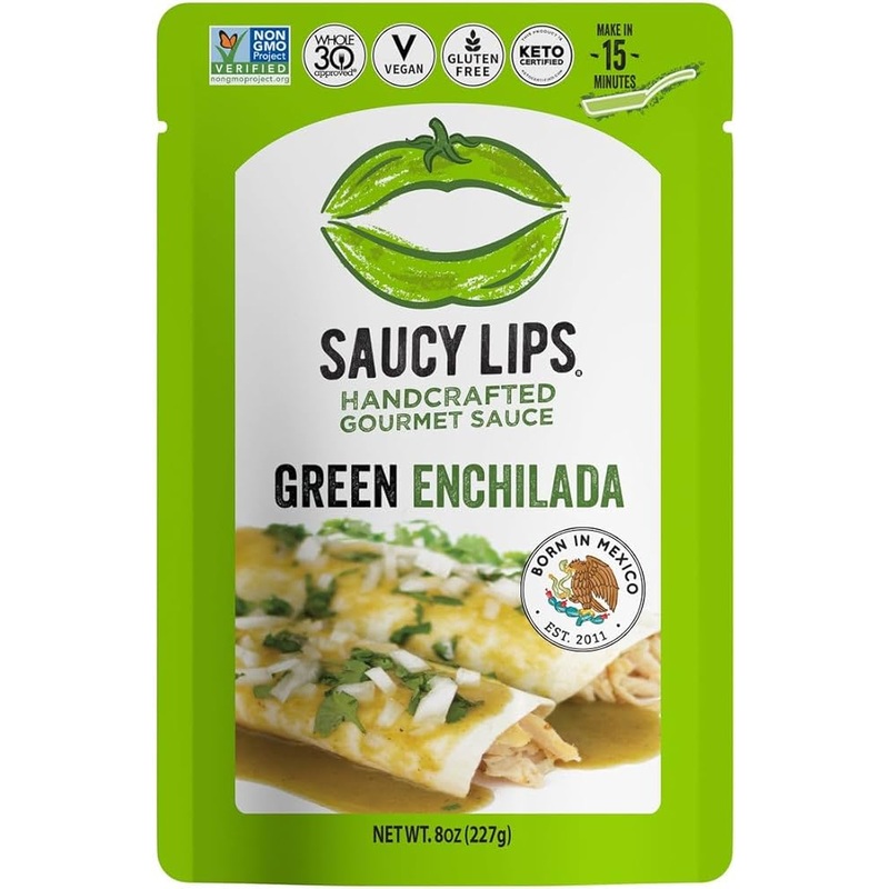 Authentic Green Enchilada Flavor at Home Craving the vibrant taste of authentic green enchiladas? Saucy Lips Green Enchilada Sauce brings the zesty, savory flavors of Mexico right to your kitchen. This 8 oz pack of 6 ensures you'll always have this delicio