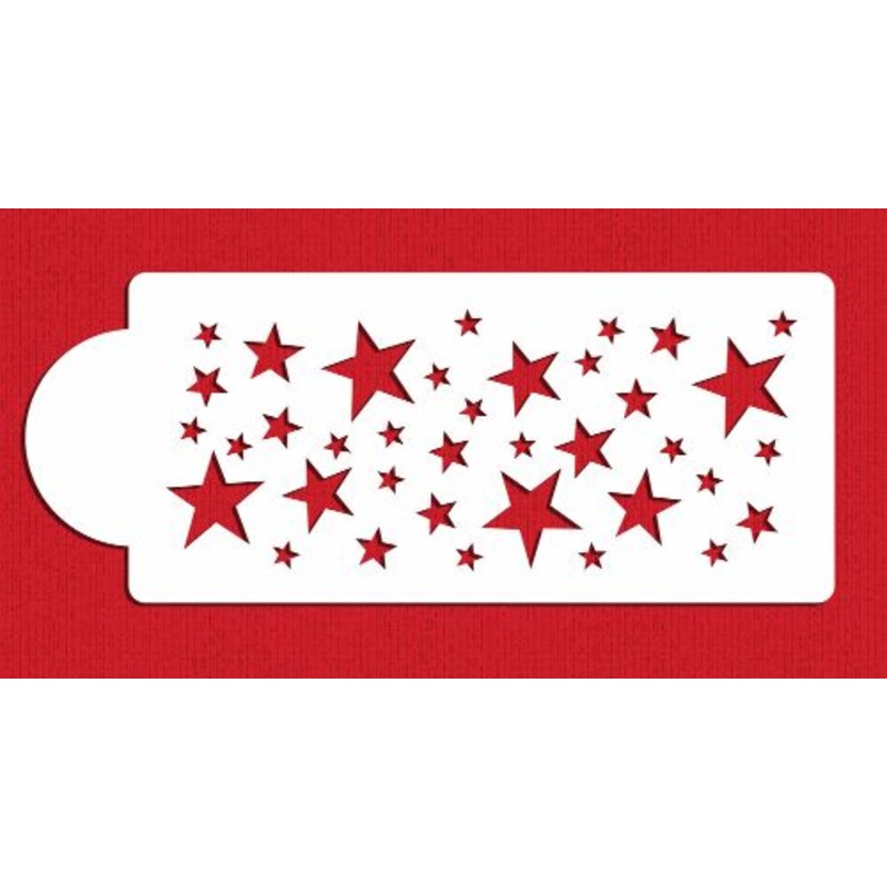 Size is 3.8″ H x 9.2″ W and precision cut from 10 mil food-grade plastic for repeated use. Stars range from .4 to 1.5 inches.