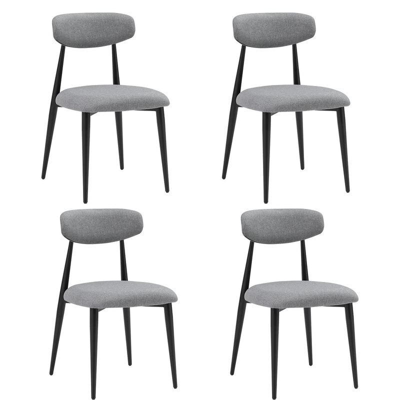 Thickened Cushion and Curved Backrest The backrest of this mid-century modern dining chairs is designed with a beautiful curve that will fit your back well while you eat and rest. The backrest is padded with foam, so your back won’t feel hard when you lean on the chair. Black Metal Frame These modern dining chairs are finished with matte black metal frame that add sophistication to the dining room while also being sturdy and durable. The modern design also makes these dining chairs easier to match with your kitchen or living room.