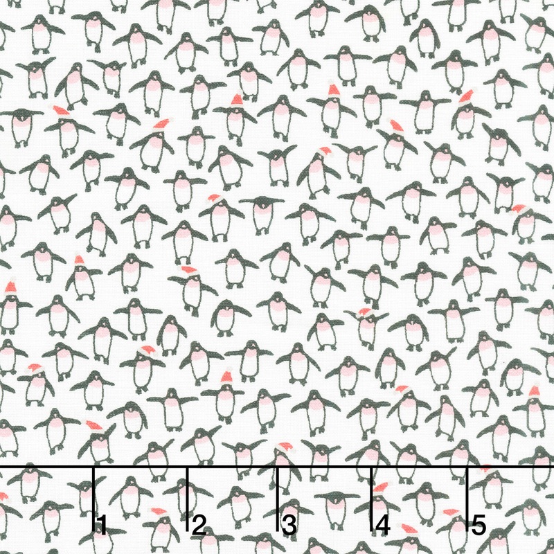 Tiny penguins dancing on a white background. Have a whimsical winter! Sleigh it Ain't So from Dear Stella Fabrics is filled with adorable animal prints to help you celebrate the holiday season. With pretty pinks, blues, and greens, these fabrics will put a