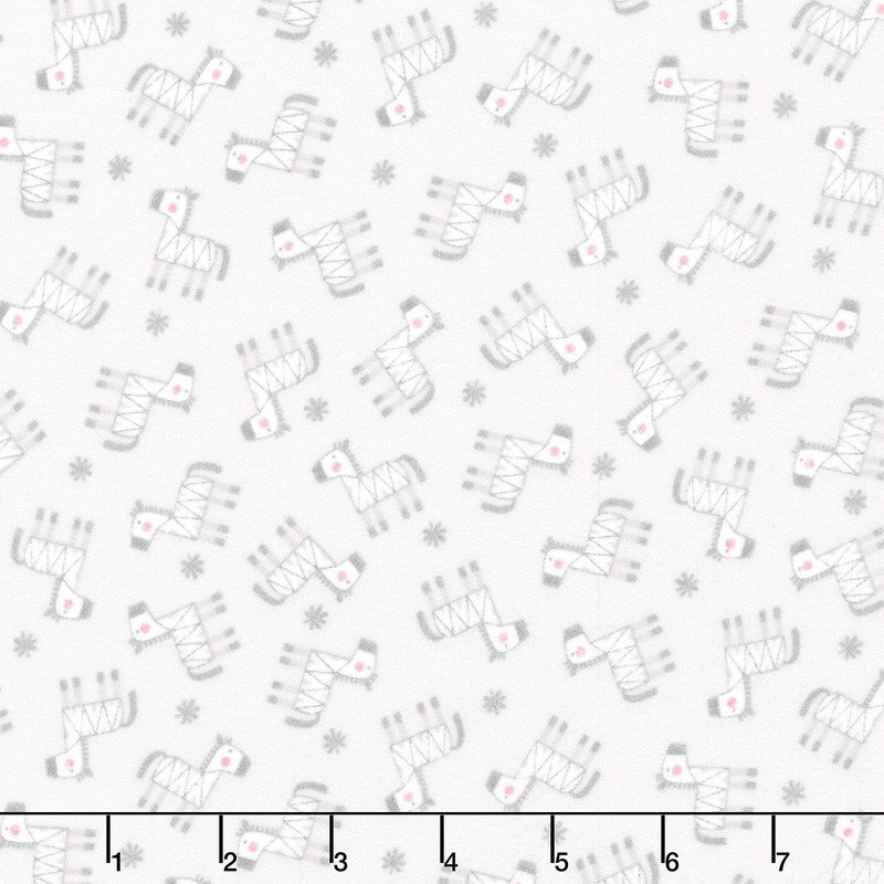Cute baby zebras tossed on gray flannel. How sweet are these cuddly creatures? These cozy flannels from Snuggle in the Jungle by Jessica Flick for Benartex are just what the little ones need! Here, you’ll find furry jungle friends such as zebras, elephants, lions, and giraffes, plus coordinating geometric prints to complete the nursery decor!