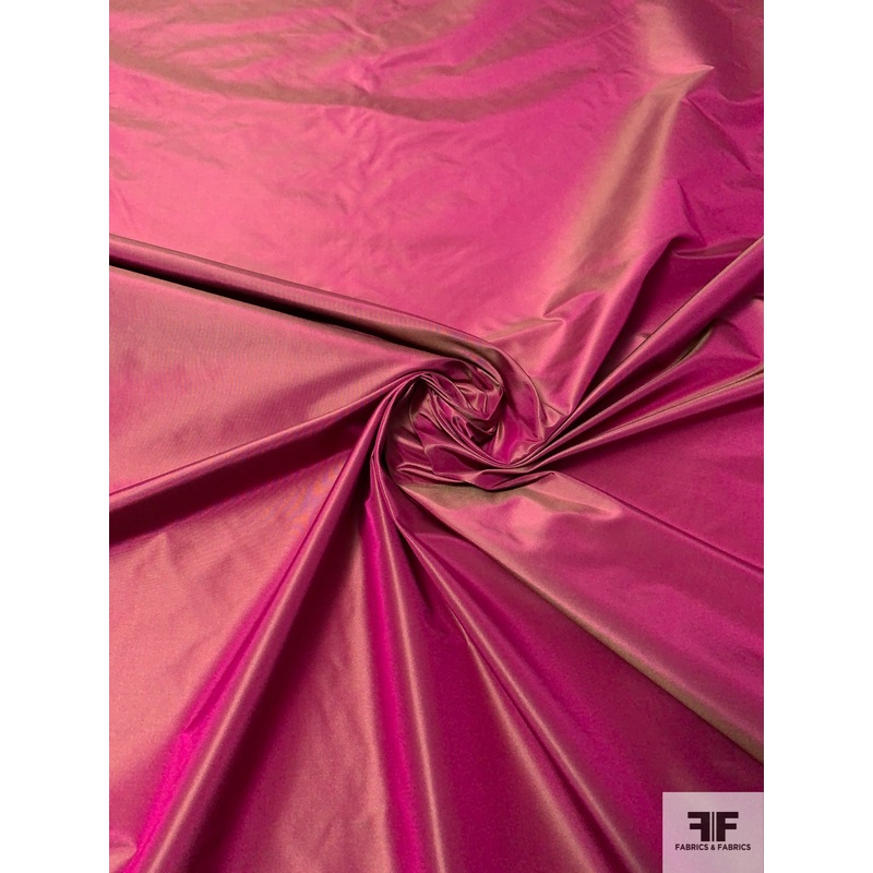 This elegant silk taffeta features a plum color with a tint of green. Renowned for its crisp drape, silk taffeta is a popular choice for gowns, dresses, and skirts. This fabric is opaque, therefore a lining is not needed unless additional structure is desi