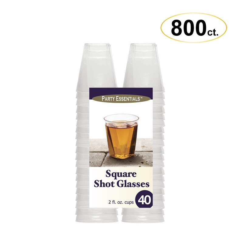 Single Pack of 40 or Case of 20 Packs: 800ctTake a whole new "twist" on the classic shot glassParty Essentials 2-ounce, hard plastic square shot glassesInnovative square shot glasses are hand washable, reusable or disposable for quick after party clean-upS