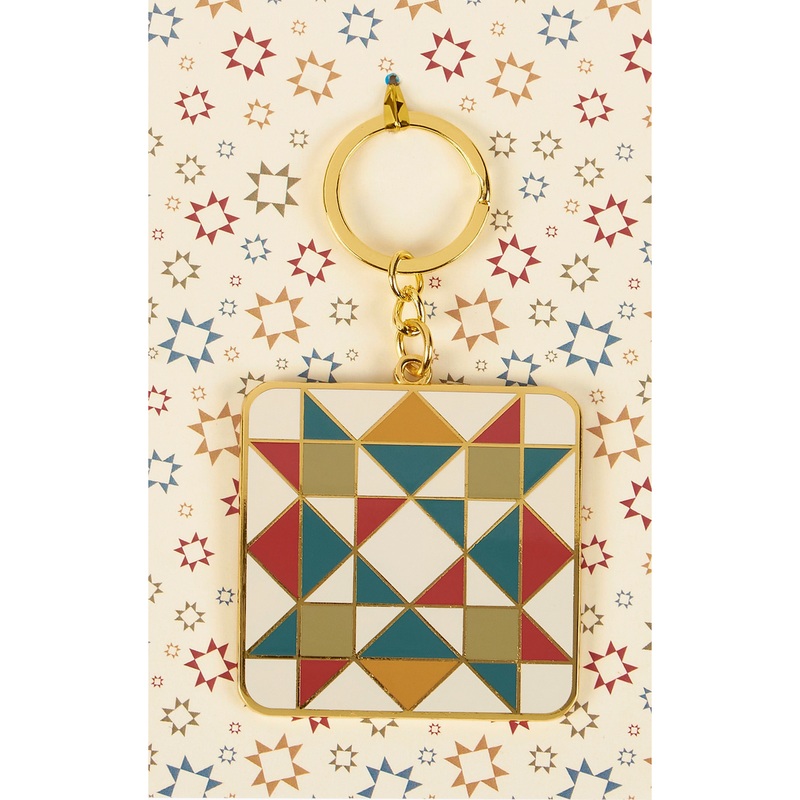 A high quality hard enamel scissor fob from our Folk Art Collection featuring a star quilt design replicated from original hand illustrated art with gold line accents. Enamel scissor fob includes a keyring to attach to zippers, keys, and more. Our Star Quilt scissor fob is attached to decorative backer card with coordinating star pattern and packaged in poly bag with keyhole at the top for easy rack display. A stylish everyday accessory great for gifting.