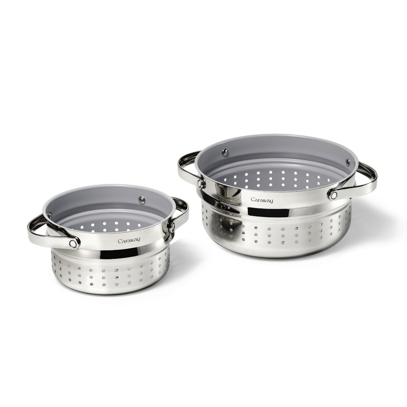 Meet the Steamer Duo, the worlds first-ever pair of non-toxic, non-stick Steamers. Steam your way to culinary greatness inside Caraway's Sauce Pan & Dutch Oven. Experience healthier at-home steaming at every portion size from veggie sides to dim sum, and b