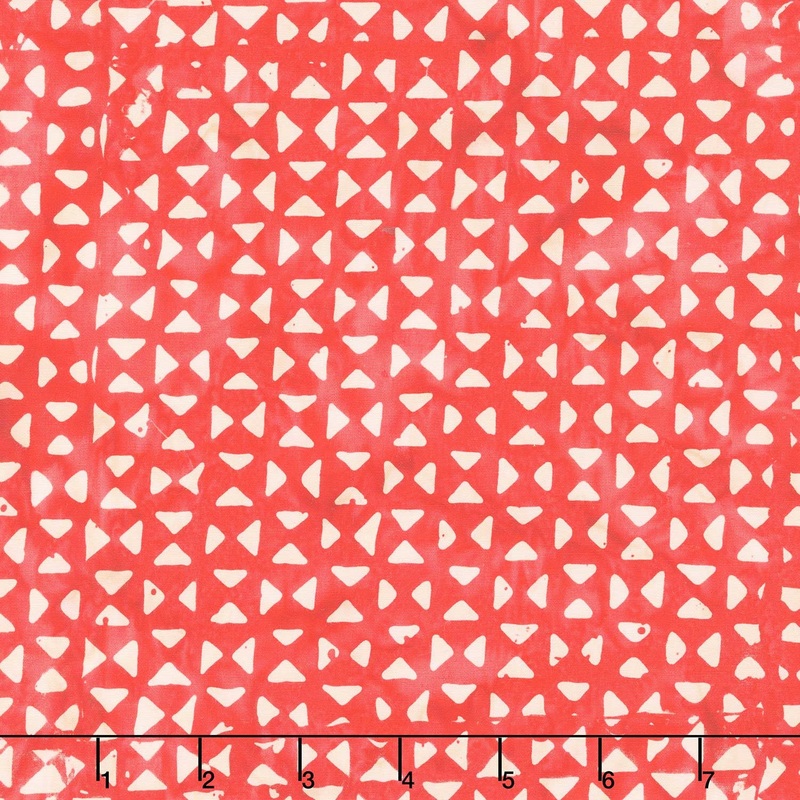 White triangles on a red background. Take note of the unique fabrics in Stenographers Notebook! These batiks by Marcia Derse for Anthology Fabrics include bold geometric patterns and free-spirited abstract designs. Great for trendy, modern quilts or other projects.