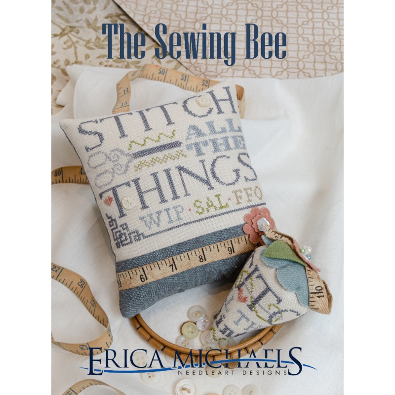 Models are stitched on 30 count Mariner's Map by Legacy Linen.Stitch counts: 81 x 64 for the pin pillow and 126 x 72 for the berryWeeks Dye Works: Battleship, Blue Heron, Cinnabar, Grasshopper, Putty andDMC: 03JABCo hand-dyed buttons are included in this c