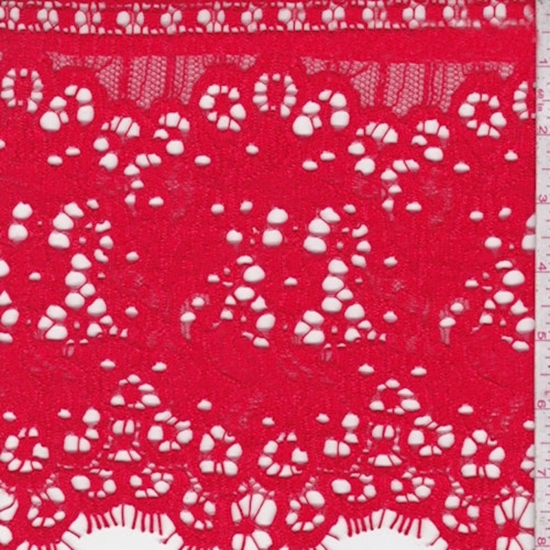 Striking Red Floral Corded Lace Fabric