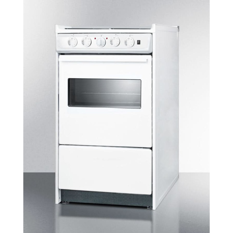 Summit 24" Electric Range with Storage Drawer and Manual Clean Oven - White - WEM110RWDescription: The Summit 24" Electric Range WEM110RW is a versatile and stylish option for smaller kitchens. Featuring a storage drawer and a manual clean oven, this range
