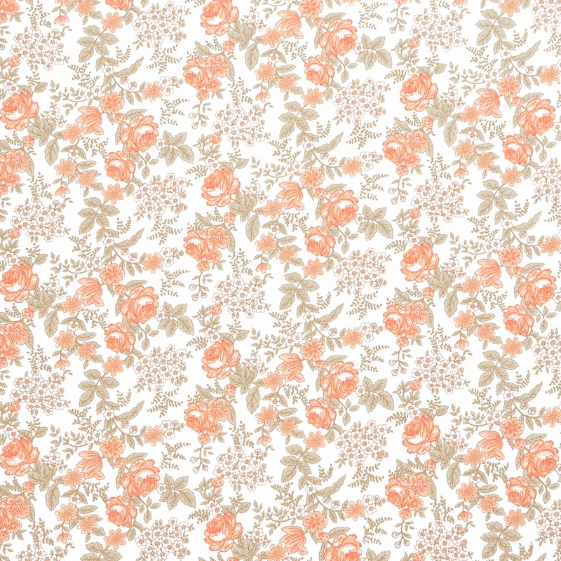 Wide backing with orange and taupe cabbage roses on a cream background. The soft, muted colors in the Sunwashed Romance collection of backings will give a gentle, romantic feel to your quilts. Kim Diehl designed Sunwashed Romance for Henry Glass Fabrics. 1