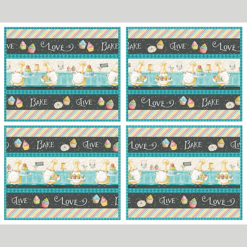 Add a little something to sweet to your dining table with these scrumptious placemats! Designed by Lisa Audit for Wilmington Prints, Sweet Little Pleasures is a pieced panel kit that makes four placemats. Featuring yummy cupcakes, baking gnomes, and baking